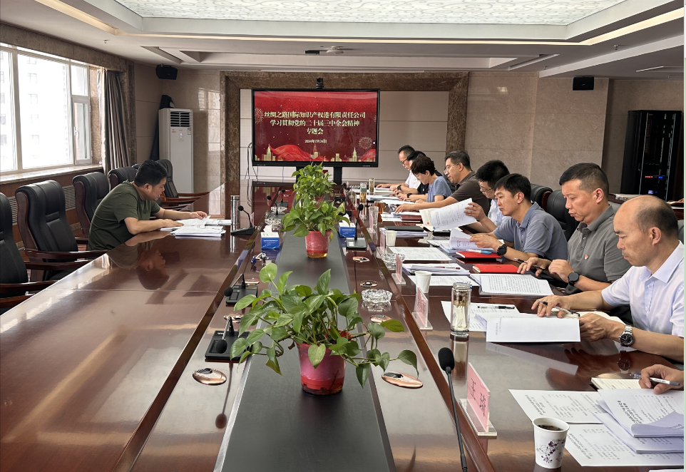 7月22日下午,知识产权港公司召开党委理论学习中心组(扩大)学习会,专题传达学习党的二十届三中全会精神,结合公司实际研究贯彻落实措施。公司党委书记、董事长贺泉茗主持会议,党委委员、财务总监、外部专职董事、副总经理及相关部门负责人参加会议。